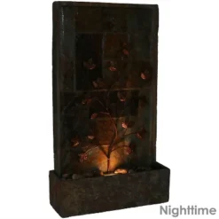 Sunnydaze Decor Sunnydaze 32″H Electric Metal Cascading Tower Outdoor Water Fountain With LED Lights