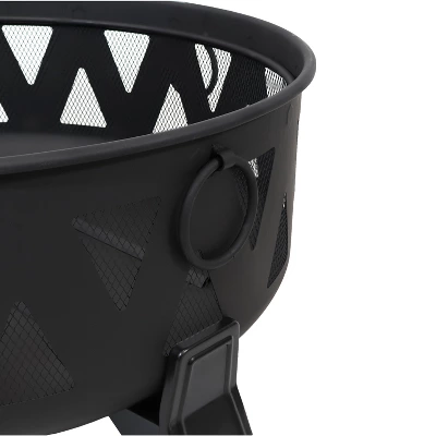 Enjoy the warmth and ambiance of a wood-burning fire on chilly nights with this Nordic-inspired wood-burning fire pit. Durably constructed of steel, this outdoor fire pit is designed to hold a roaring fire and be enjoyed season after season. This fire pit also has lower ridges on the bottom to help elevate the firewood for air flow and better, longer wooden burns. This fire pit includes a mesh spark screen and fire poker that allows anyone to safely enjoy and tend to the fire while keeping flying embers contained within the fire’s vicinity. Not only can the poker be used to safely stir the logs, but it can also be used to lift the hot spark screen off the fire bowl. Whether in the backyard or vacationing at the cabin, this outdoor fire pit is great for making cozy memories with friends and family to treasure for years to come.
