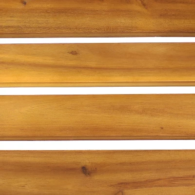 - Acacia wood slat back and seat with steel frame wrapped in resin rattan