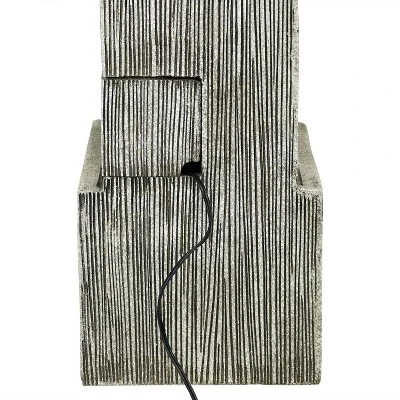Add an artistic and contemporary water feature to your garden, patio, yard, or other landscaping area with the Modern Artistry water fountain featuring LED lights. Made of durable polyresin, this fountain features a variety of shapes and textures that lend visual interest to this outdoor decor piece while remaining resistant to the elements outdoors. Water streams from the top of the sphere and streams out from the spout onto the black column below. The water flows down the ridges of the black column to the bottom basin where it collects and circulates back to the top via a submersible electric pump. Enjoy this beautiful water feature at night with the LED lights illuminating the fountain from the top of the sphere and the column. This fountain includes an electric submersible pump that makes it simple to set up without any complicated installation or plumbing involved. Just place this fountain anywhere, plug it in to your nearest outlet, and relax, enjoying the soothing sounds and beautiful features.