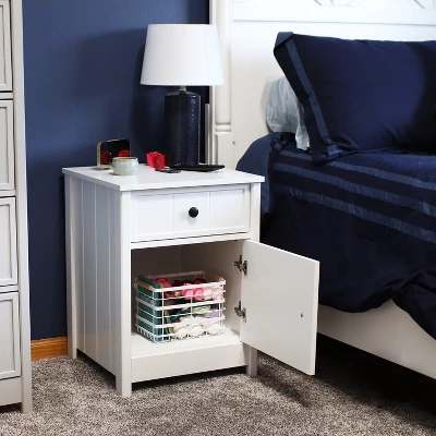 - Beadboard Side Table with Drawer and Cabinet – White