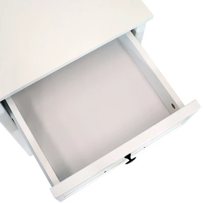 • LONG-LASTING STYLE: Made with durable and smooth MDF material, this bedside table features a classic and contemporary look of real wood without the added maintenance. The black handles are made with zinc alloy metal while the drawer features carbon steel sliders for smooth opening and closing. Built to last, this side table features a white painted finish with a UV-resistant coating.