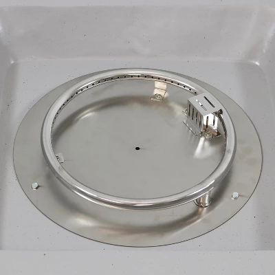 - stainless steel burner, ignition battery, lava rock & 9′ gas hose with regulator
