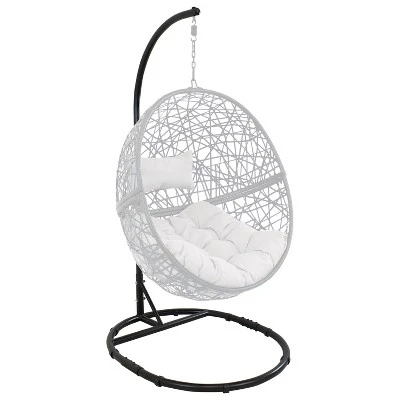 Enjoy lounging on your favorite egg chair by placing it on this egg chair stand featuring an extra-wide, round base for support, strength, and style. This stand is constructed of durable steel with a classic black powder-coated finish for extra strength and resistance to the elements outdoors. This sleek stand beautifully complements any egg chair (please note, an egg chair is not included and must be purchased separately). All the necessary tools and hardware are included to assemble this stand right away. So, you’ll be sinking peacefully into your favorite egg chair in your outdoor living space in no time. It’s the perfect addition to the patio, deck, front porch, bedroom, balcony, or living room as this stand allows you to not have to drill holes in your ceiling when placed indoors. Place in any area for ultimate comfort and relaxation so you can feel like you’re floating on clouds in your hanging egg chair while you nap, eat snacks, bask in the sunlight, or read with ease. Please note, an egg chair is not included with purchase.