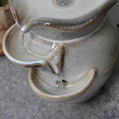Make any home, office, or living space more tranquil and serene with this elegant cascading tabletop water fountain. Its small size makes it the right size for desktops, end tables, and coffee tables. Water gently flows from the top tier with the gently curved edges down into the side tiers below. This small water feature will spruce up a desktop in any office cubicle or the counter in the kitchen. Place this fountain on a shelving unit in the bedroom, living room, or other indoor space for a calming, Zen experience. Everything needed to put this decorative accent is in the box, including 1 indoor tabletop fountain and 1 electric submersible pump. The submersible pump continuously circulates water through the fountain for endless relaxation. No plumbing is required. Simply plug this fountain into an electric outlet and relax. Plus, it makes a great gift for a wedding or housewarming party.