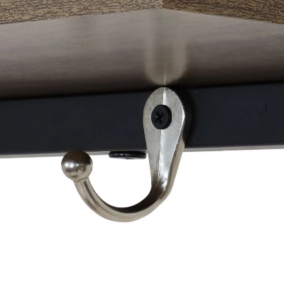Organize the entryway with this sophisticated hall tree bench featuring a coat and shoe rack. This convenient entryway bench with hooks is great for containing clutter and storing coats, shoes, backpacks, purses, and more! Featuring a shelf and bench seat made from scratch- and stain-resistant, medium-density particleboard (MDP) and a powder-coated steel frame, this modern entryway coat rack bench has a distinct, industrial-style look that will complement any decor style. Plus, it has four protective PVC feet to help prevent floor scratches and scrapes. This hall tree features three hooks for hanging coats, scarves, or purses and bags as well as a lower shoe rack that can store up to four pairs. The bench and upper shelf also provide convenient surfaces where you can keep lunchboxes, hats, and gloves. It can even be used to display houseplants or picture frames. It’s a convenient addition to the entryway, utility room, or mudroom.