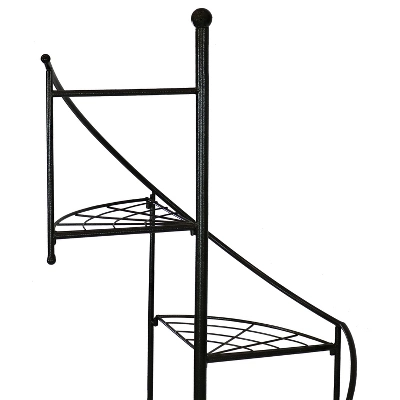 Display plants or decorative accents on this durable metal plant stand. This set of two plant stands provides an attractive base to show off greenery and blooms. These two stands feature beautiful, sturdy, scrolled legs for support and four tiers in a spiral fashion to make your greenery stand out. These stands have a beautiful staggering appearance or asymmetric design to appeal to all different types of pots, plants, and outdoor styles. In addition, this outdoor plant stand is made from steel and powder-coated bronze for long-lasting durability and strength as this construction is weather-resistant and made to last year after year. Easily place these stands together to create a cohesive floral display on any patio, deck, front porch, or garden, or place these stands separately to add bright, lively florals all over your outdoor space. These stands can even be used indoors to easily display your favorite real or fake plants in your entryway, living room, sunroom, or other area.