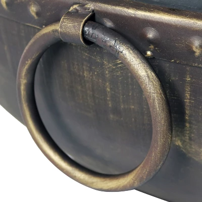 - Brass tack detailing and bowl handles makes fire pit extra unique