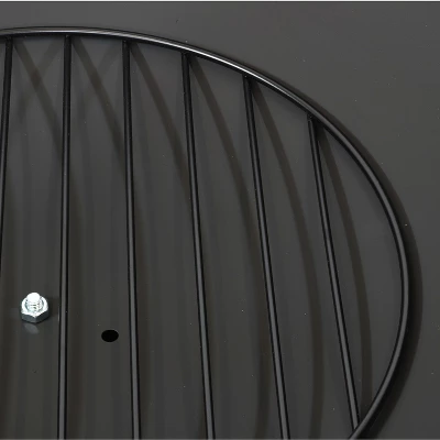 Add a contemporary touch to any patio, yard, campsite, or garden with this round steel fire pit. Featuring a durable steel construction and black high-temperature paint finish with brass accents as well as “brass tack” detailing along the top edge of the bowl, this large fire pit is sure to make a stunning first impression while remaining resistant to the outdoor elements. In the box, find everything needed to use the fire pit (except for the firewood) including: the fire bowl, a log poker to safely move the firewood within the fire pit, a wood grate to stack firewood on and keep airflow circulating, and a spark screen to keep embers from flying out of the fire pit. This unique, stylish fire pit is sure to be the feature that keeps your summer nights glowing! Grab friends, some snacks, marshmallows, and firewood, and watch your night illuminate with fun.