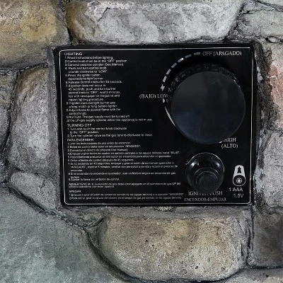 Add warmth and style to the patio, backyard, sunroom, or any other outdoor space in need of a cozy, fun feature with this rock column-inspired, liquid propane, gas fire pit. This unit features a durable and attractive, fiberglass reinforced cast stone construction, as well as an electronic control panel and an ignition switch. The 20 lb LP tank (not included) will be safely out of sight behind the matching panel door so everyone can enjoy the fire pit. Each unit comes with a 10″ diameter, stainless steel burner, a battery for the ignition, a weather-resistant polyester cover, 6 lbs of lava rock, and a 16″ gas hose with a regulator. To use the fire pit once the propane tank is hooked up, push the flame control knob in a counterclockwise rotation to low and then push the igniter button until the flame lights. Easily create cozy memories with friends and family in style and without extra maintenance with this fire pit.
