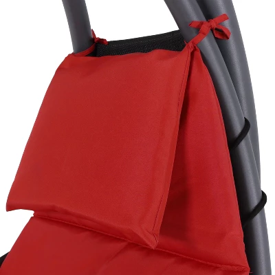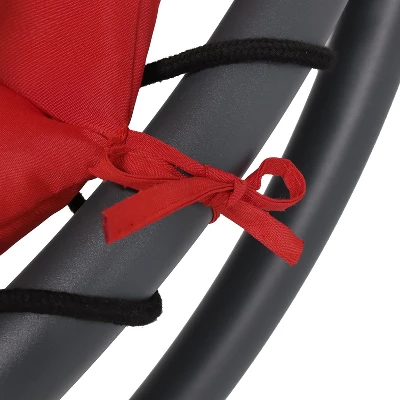 Bring the experience of floating on a cloud with this comfortable floating chaise lounge chair. This hanging lounge chair gives you the feeling of being weightless, great for taking naps after a long day in the sun. This hanging hammock lounge chair is a wonderful addition for the patio, deck, porch, front yard, or around the fire pit. With its beautiful, curved design in the stand, chair, and canopy, this dynamic chair will complement any outdoor space and will look – and feel – stunning. A headrest and padded cushion made from high-quality fabric is sure to keep you comfortable all day long. The durable black powder-coated steel cCshaped stand elevates you securely while remaining strong against the elements. Two padded armrests allow you to relax your arms and shoulders while reclining outside. The removable canopy umbrella keeps you shaded and cool on sunny days and adds a beautiful pop of color anywhere.
