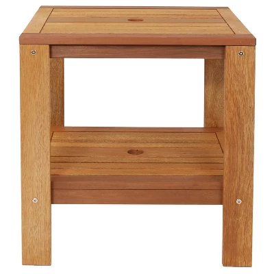 Create a cute, cozy, and intimate gathering space on the porch or the patio with this meranti wood 3-piece outdoor patio conversation set featuring two chairs with arm rests and a matching, wooden side table. This attractive outdoor furniture set is constructed of meranti wood with a beautiful teak oil finish, sure to complement any outdoor style. It features a simple yet striking design on the chairs and table to add a timeless and attractive feature that works well with other styles of outdoor decor. Whether you are striving for boho chic or classic farmhouse style, the clean lines and classic appearance of these versatile pieces of furniture will update any outdoor living space. Plus, everything needed to assemble this set ins in the box, including the instructions, hardware, and tools! Place this 3-piece set on your patio, porch, deck, or in your garden or yard and enjoy fresh air with the people you love effortlessly!