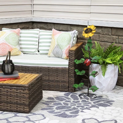 - Features a metal sunflower with ladybug companion