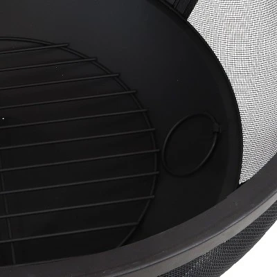 Create a striking centerpiece for the backyard or patio with this modern Flaming Ball fire pit. This fire pit has handles on each side so it is simple to move from place to place. A large front handle allows the fire pit door to easily glide open to access the flames. Close it up again after tending the fire to keep stray sparks and embers safely contained inside thanks to the metal mesh design. Plus, this fire pit is made from a durable metal construction and metal mesh material and finished with a high-temperature, black paint finish for ultimate durability. It comes with a 200D PVC cover to ensure longevity. After the fire has been completely extinguished and drape the protective cover over the fire pit to help protect it from the outdoor elements when not in use. Plus, this fire pit includes a 16″ poker to maneuver logs in the fire without worrying about burns, and a 16.5″ firewood grate to allow airflow for brighter burning fires. The ash fire bowl tray has handles so it is easy to lift out, remove the ashes, and clean.