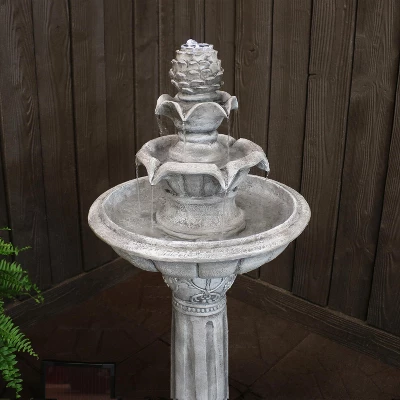 • STRONG AND EASY TO MAINTAIN: Fountain is constructed of polyresin that replicates the look of classic stone and other classic materials; Material is durable and can withstand the elements; Water feature is also easy to keep clean; Water gently bubbles from the top of the fountain and cascades down the tiers below; Pedestal features delicate decorative details for added appeal