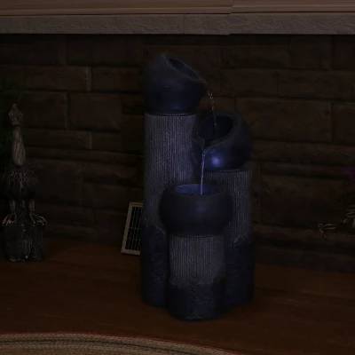 Update any patio or lawn with this decorative and relaxing solar water fountain featuring a backup battery. Constructed of durable and easy-to-maintain polyresin, this fountain is lightweight, easy to move anywhere, and is resistant to the elements outdoors. Also, this tiered outdoor water feature is designed with a variety of textures and neutral colors to enhance any outdoor living space. Water gently flows from each of the tiered vessels for a peaceful decorative accent that harnesses the power of the sun via the included solar panel. When the solar panel is in direct sunlight, the pump will be powered by solar energy and the battery pack will recharge. Once fully charged, the battery will power the fountain for up to 4 hours. The battery will also automatically run the fountain when it is cloudy or nighttime. Place this stunning, detailed fountain anywhere and watch your space illuminate with soothing sounds and beautiful views.