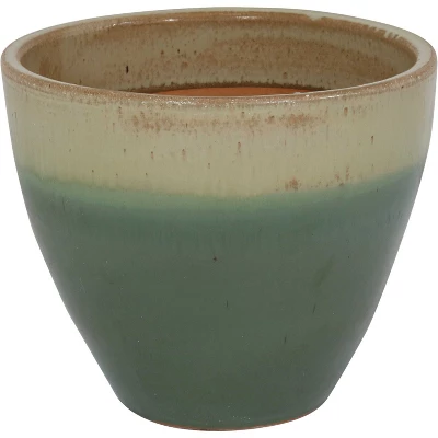 Give favorite plants, herbs, or flowers a beautiful home with this hand-painted glazed ceramic planter. Watch plants grow and thrive on your patio, deck, front porch, living room, kitchen, front hall, or any other living area needing an extra accent of greenery. The Resort planter is available in rich color schemes and each ceramic planter is hand-painted with glazed finish. The ceramic material is weather resistant, meaning it won’t crack, break, chip, or wear down it’s colors in mild or harsh sun, rain, and snow. Weighing 19 lbs each without soil, these guys are heavy enough to stay put against harsh wind. The glaze also helps bring simmering beauty to any area these are placed. The planters feature drainage holes to make them great for use on the patio, deck, or garden. For use indoors, please use a separately purchased saucer to prevent leakage on floors and other surfaces.