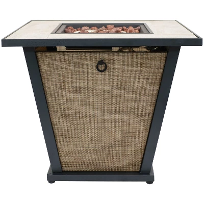 • BEAUTIFUL PROPANE FIRE PIT TABLE: This fire pit features a durable metal frame with stylish rafa fabric sides and a tile tabletop for a unique look. Adjustable rubber feet will help keep the fire pit level.
