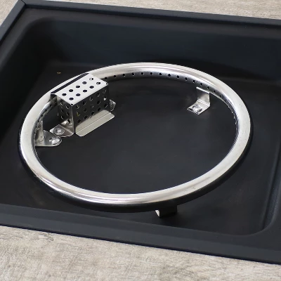 - Includes gas fire pit, stainless steel burner, decorative lava rocks, regulator hose, protective cover, lid