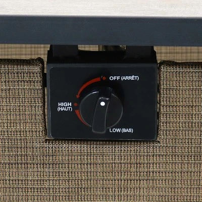 Enjoy the warmth and comfort of a cozy fire without any of the smoke, ashes, or similar maintenance or a traditional fire with the elegant Reykir outdoor gas fire pit table. Powered by liquid propane, this fire pit table easily ignites and produces clean-burning fires without the smoke or cleanup of traditional wood burning firepits. This stylish fire table has a durable metal frame and tabletop with rafa fabric sides for a unique look that will complement any patio decor or furniture. This sophisticated tile tabletop provides a convenient surface where you can place a drink or book as you chat with friends around the fire. This table comes with decorative lava rocks that light up easily and create a fun, unique experience on any patio, deck, front porch, sunroom, or other living space. This fire pit table also includes a cover to easily protect this table from the elements and keep it elegant and strong for years to come.