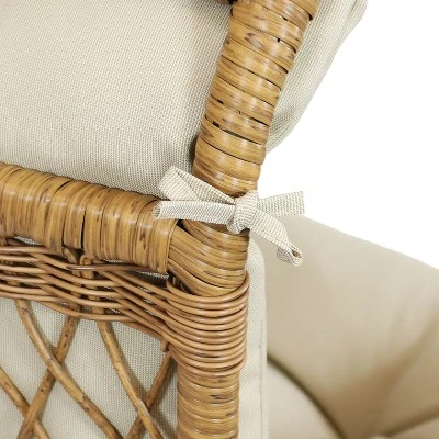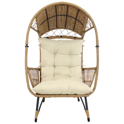 The Shaded Comfort patio wicker stationary egg chair is sure to bring cozy relaxation and style to the patio, front porch, deck, or backyard. This trendy and cozy patio chair is a wonderful place to enjoy a refreshing beverage, read a book, or simply sit back and watch the clouds roll by. Featuring a durable steel frame wrapped in wicker, this boho, outdoor egg chair features a plush, polyester cushion coverwith polypropylene fill for extra comfort. With its neutral-colored frame and cushions, this basket chair is sure to complement any outdoor decor style and match other outdoor furniture pieces. The one-piece, outdoor cushion is easy to set up. Simply secure the cushion using the four 7-inch long fabric ties that are attached to the body of the cushion. With a wide, built-in canopy, this unique patio chair provides soothing shade from the hot sun during warm, sunny days.