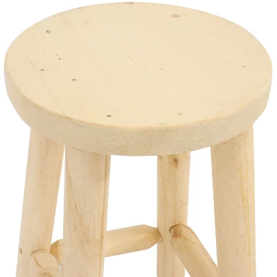 Enjoy every meal, snack, or beverage you indulge in seated on this round wooden kitchen stool. This 14-inch round-top stool is perfectly sized to fit at any countertop. The unfinished wood bar stool brings a country feel to any home, cabin, or bar. Leave this stool in its simple, unfinished state for a rougher, more rustic appearance, or add your personality to it by finishing it off with a wood stain of your choice (not included). The rungs on each side of the stool serve as extra support and can act as footrests as well. This 24-inch wooden stool has a weight capacity of 260 lbs. It can be placed at the counter, table, or can be used as extra seating in the living room. You can also get creative by using this stool for more unconventional purposes, such as a single plant stand or a small side table.